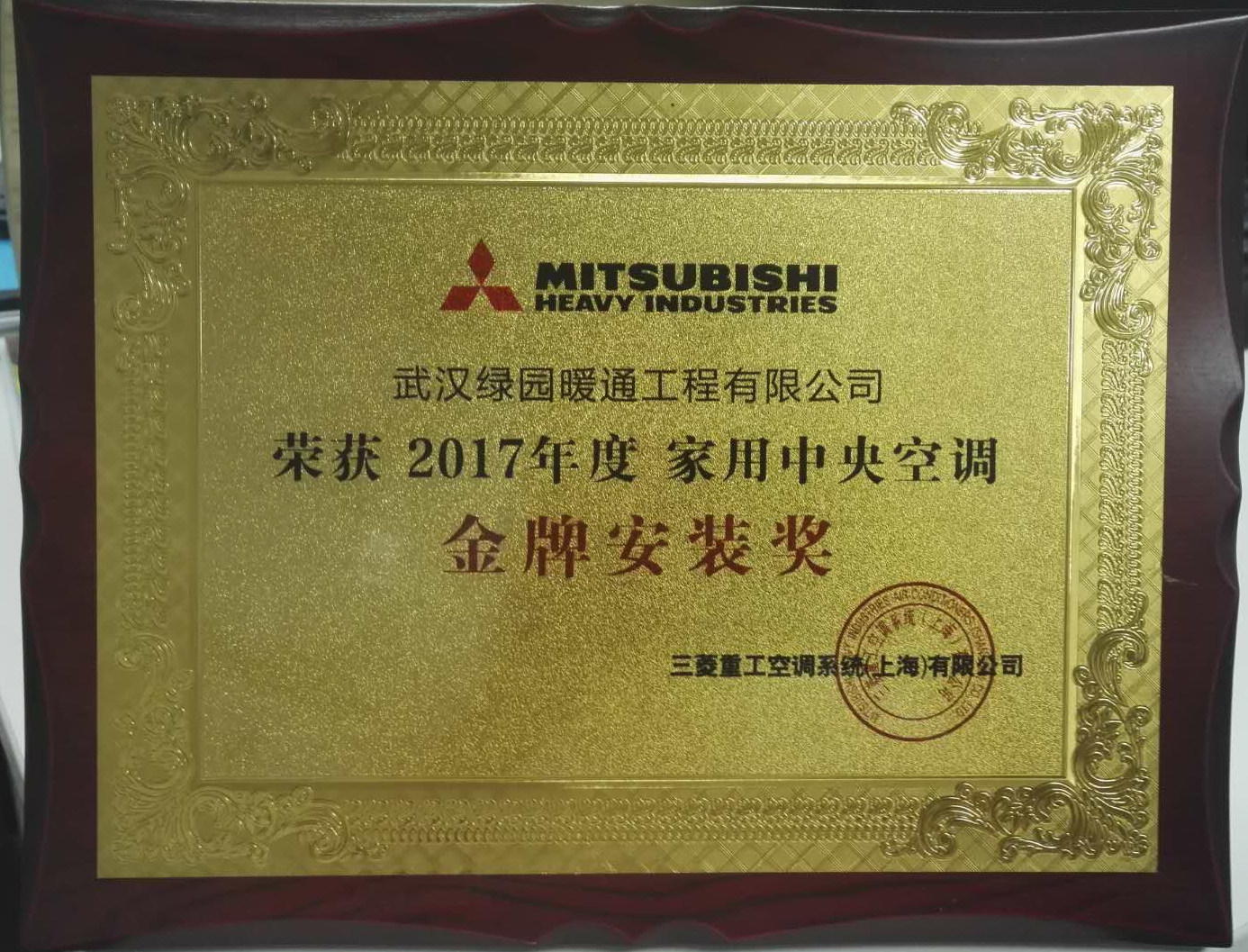 三菱重工家用中央空调金牌安装奖